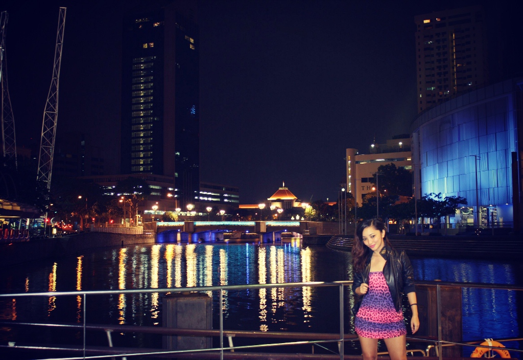 neon dress - TOPSHOP, leather jacket - TOPSHOP, sandals - Charles and Keith